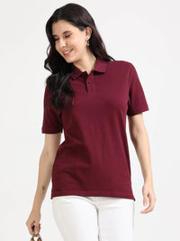 Designed in a regular-fit silhouette with a neat box placket, half sleeves, and double-needle stitched details, this polo blends softness, durability, and elegance - perfect for women who prefer all-day comfort with a polished, minimal style.